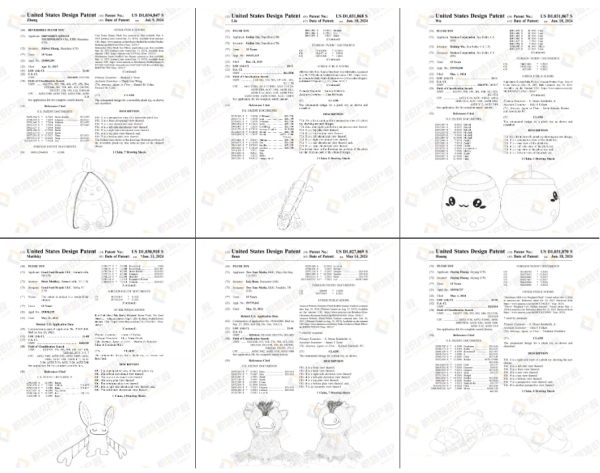 近期下证的部分毛绒玩具外观专利: